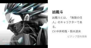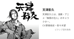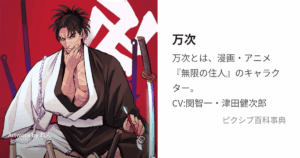 「百人斬り」の不死身の剣士。 内面は義理堅く情に厚いが、ぶっきらぼうで飄々とした態度でそれを隠す。血仙蟲によって致命傷を負っても生き延び、肉体の再生や切断・再生といったショッキングな描写が多い。アニメ版ではその「不死性」と痛々しい描写が映像的に強調され、声の演技や戦闘演出で“ただのヒーローではない重さ”が表現されています。
